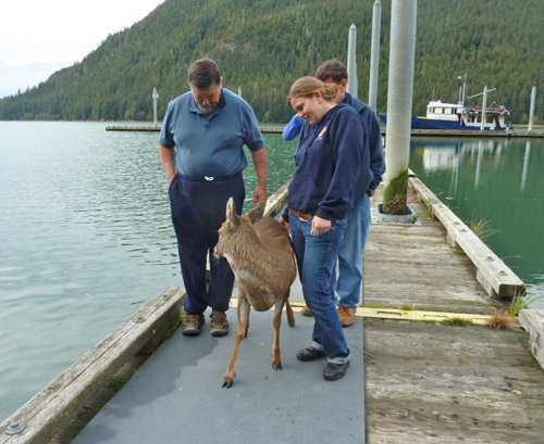 Here are two touching little stories about animals and humans helping each other at the time that it's most needed. Just two small examples of things that happen all over the world every day, and that shows that in spirit, We Are All One. Best Day of Fishing! I've heard of salmon jumping into boats but not deer. Four were pulled from the icy waters of Stephens Passage, Alaska , by a group of locals on Tom Satre's 62-foot charter vessel. Four juvenile Sitka black- tailed deer swam directly toward the boat. ![]() Once the deer reached the boat, the four began to circle the boat, looking directly at the humans on board. Clearly, the bucks were distressed. With help, the typically skittish and absolutely wild animals came willingly onto the boat. Once onboard, they collapsed with exhaustion, shivering. ![]() Here the rescued bucks rest on the back of Tom Satre's boat, the Alaska Quest. All four deer were transported to Taku Harbor. Once the group reached the dock, the first buck that had been pulled from the water hopped onto the dock, looked back, then leapt into the harbor, swam to shore, and disappeared into the forest. After a bit of prodding and assistance from the humans, two others followed suit, but one deer needed more help. ![]() Here he is being transported by Tom Satre. ![]() Tom, Anna and Tim Satre help the last of the "button" bucks to its feet. They did not know how long the deer had been in the icy waters or if there had been others who did not survive. The good Samaritans describe their experience as "one of those defining moments in life." The Story of Jeff and his Eagle No need for introduction here, the video says it all. ![]() ![]()